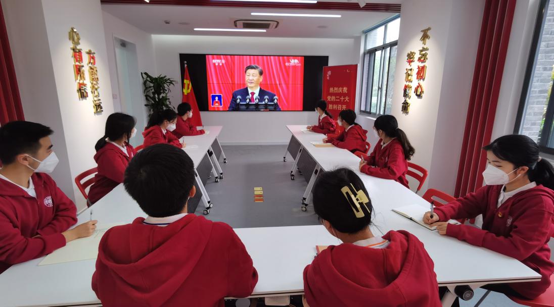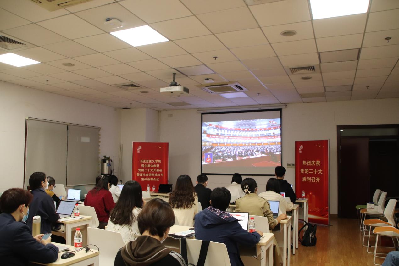党的二十大是在全党全国各族人民迈上全面建设社会主义现代化国家新征程、向第二个百年奋斗目标进军的关键时刻召开的一次十分重要的大会,是全党全军全国各族人民政治生活中的大事。在观看直播现场,全体师生聚精会神,边听边记,为习近平总书记立意深远、振奋人心、金句连连的讲话所打动,深切感受到了过去十年党和国家事业取得的非凡成就,对未来中国发展的宏伟蓝图充满信心。