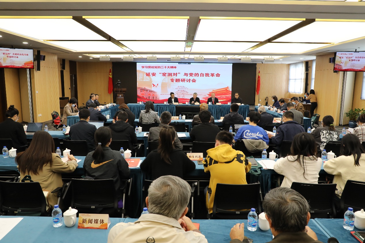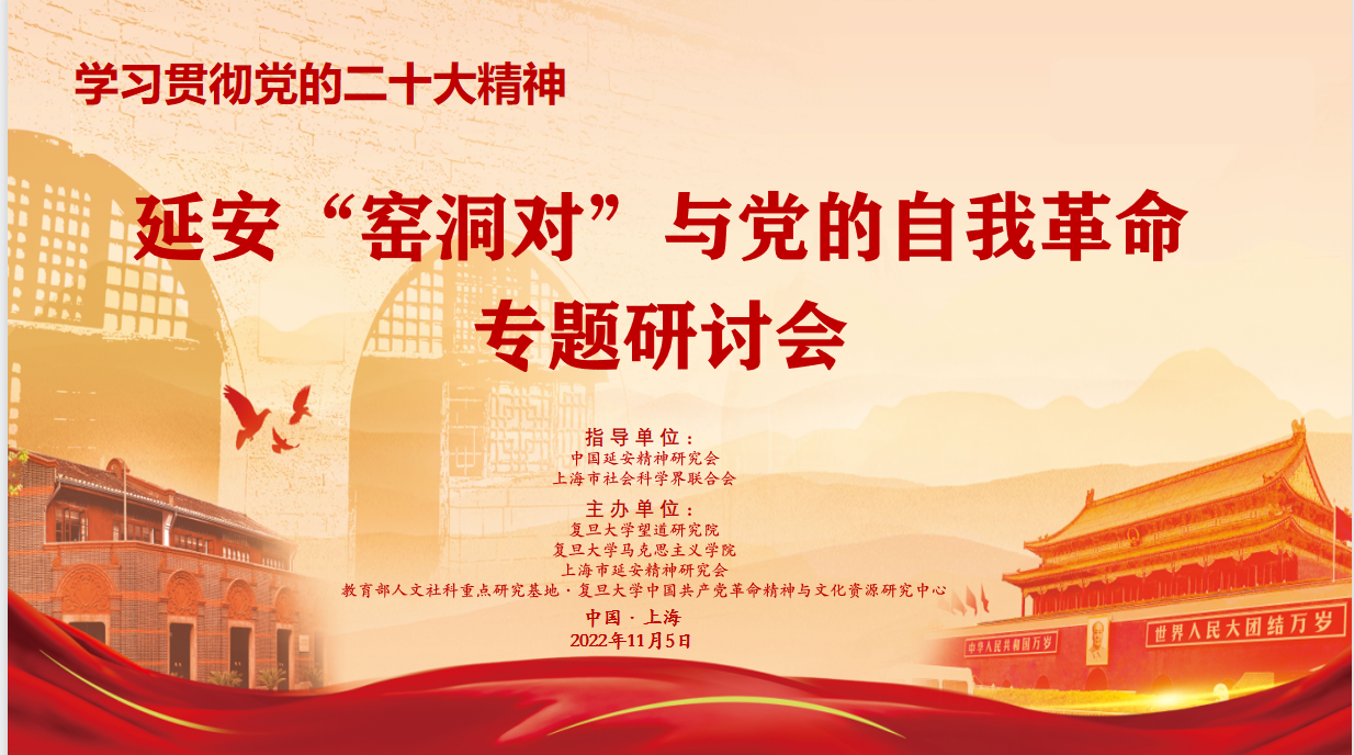 2022年11月5日下午,“学习贯彻党的二十大精神:延安‘窑洞对’与党的自我革命”专题研讨会在上海社会科学会堂召开。研讨会认真学习贯彻党的二十大精神和习近平总书记率领新一届中央领导集体瞻仰延安革命纪念地时的讲话精神,围绕如何跳出历史周期率,实现中华民族千秋伟业,弘扬伟大建党精神和延安精神,坚定历史自信,增强历史主动,为实现第二个百年目标而展开学术交流研讨。