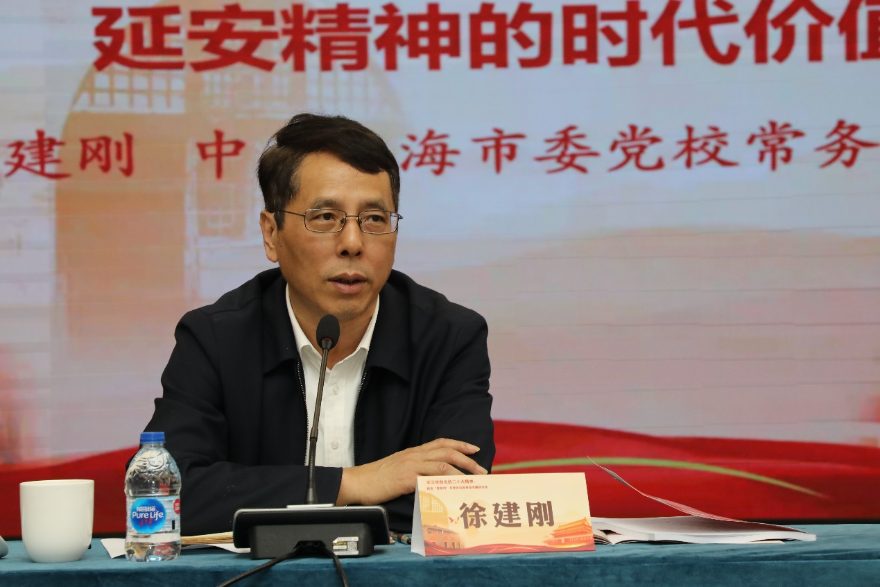 徐建刚发言中说,进一步学习二十大的精神,除了要原原本本学习二十大的原文,还要注意二十大前后习近平总书记发表的一系列重要讲话,以及习近平总书记率领中央政治局常委瞻仰延安革命纪念地的讲话精神,都有十分重要的意义。二十大提出一个非常大的命题,即“传承红色基因,赓续红色血脉”,代表了中国共产党对于自身历史的理解。当前和延安时期同属大的变革时期,学习二十大报告再读延安时期毛泽东七大的书面和口头报告,得到了“两个确立”、完成了马克思主义中国化的命题、敢于斗争,敢于胜利、独立自主、底线思维、“三个务必”、加强党的建设和加强党的团结这八个方面的启示。如果回顾和思考毛泽东这一段重要讲话,会知道为什么把“传承红色基因,赓续红色血脉”写入二十大报告,我们从历史当中汲取了前进的动力。