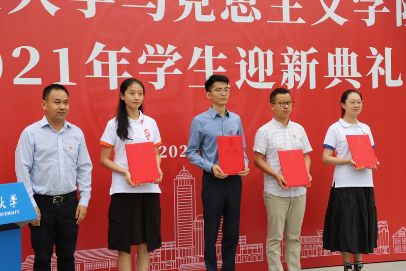党委副书记潘孝楠老师宣读2020-2021学年优秀学生代表获奖情况,表彰在过去一年中矢志拼搏、砥砺奋进取得骄人成绩的团体和个人。激励新生在学思践悟中坚定理想信念,在奋发有为中践行初心使命,以青春书写不负时代的华彩篇章