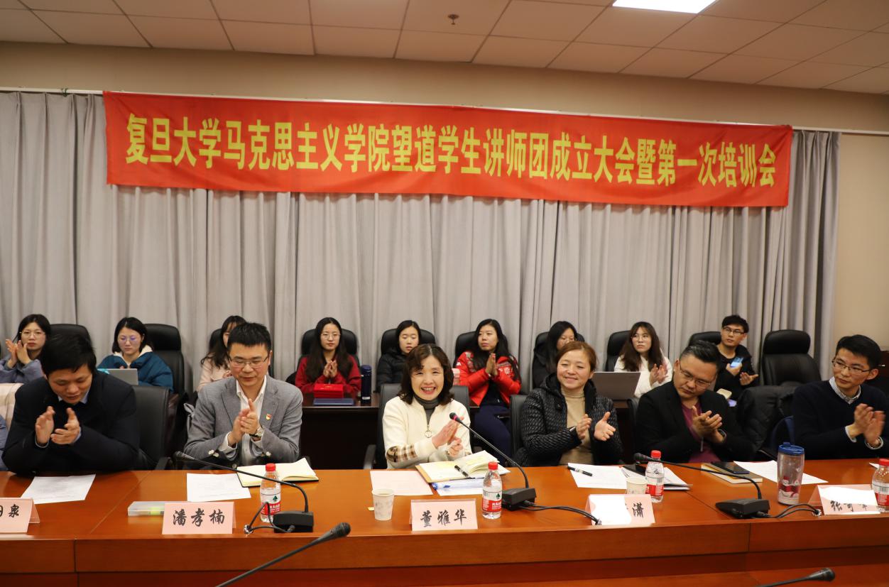 1227日下午,奈飞工厂 望道学生讲师团成立大会暨第一次培训会于光华楼西主楼501会议室举办。学院党委书记董雅华、党委副书记潘孝楠,奈飞工厂 教师张奇峰、朱潇潇、李国泉出席大会。成立大会由望道学生讲师团副团长李欣轩主持。