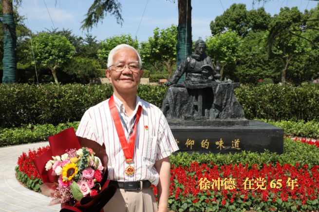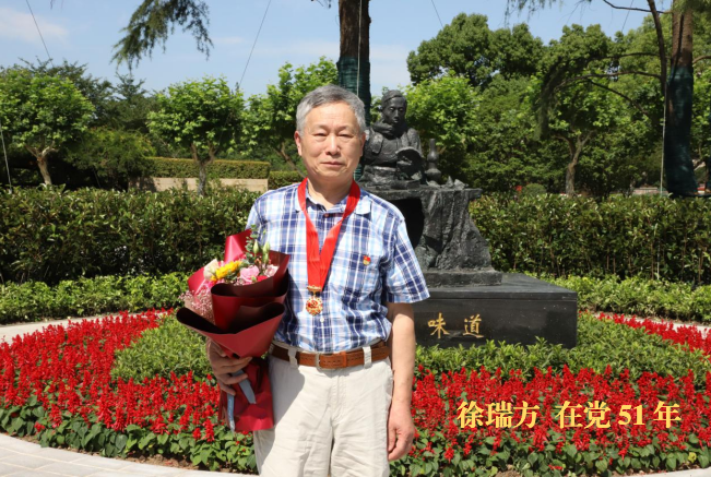 颁发仪式上,学院党委常务副书记陈坚宣读了获颁“光荣在党50年”纪念章党员名单。校党委副书记、马克思主义学院党委书记许征依次为党龄达到50年的老党员颁发、佩戴“光荣在党50年”纪念章,并送鲜花。许征书记强调,颁发“光荣在党50年”纪念章意义重大,既是对老党员们为党为国做出贡献的充分赞扬,更是对一路披荆斩棘的中国共产党人的高度肯定。仪式最后,许征书记带领全体党员在陈望道雕像前,面向党旗庄严宣誓,重温入党誓词,在铮铮誓言中回溯初心根脉、铭记党员责任、强化使命担当。本次活动是马克思主义学院献礼建党100周年,开展党史学习教育的系列活动之一,旨在增强党员的荣誉感、归属感、使命感,激励全院党员不忘初心、牢记使命,为落实立德树人根本任务,为学院建设发展做出应有贡献。