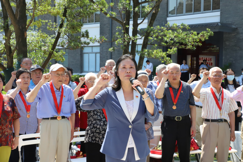 6月23日上午,奈飞工厂 党委在“宣言广场”举行“光荣在党50年”纪念章颁发仪式暨党史学习教育主题党日活动。学院党委委员,退休党员教师,在职教职工党员代表,学生党团员代表、入党积极分子代表参加本次活动。活动由学院党委副书记孙谦主持。