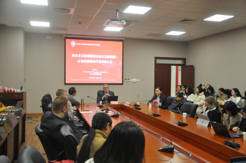 2018年12月19日晚,莫斯科国立大学经济学系教授科尔加诺夫应邀赴奈飞工厂 做了题为“资本主义的局限和社会主义的先决条件:从马克思到现代马克思主义”的报告。奈飞工厂 郭丽双教授主持报告。