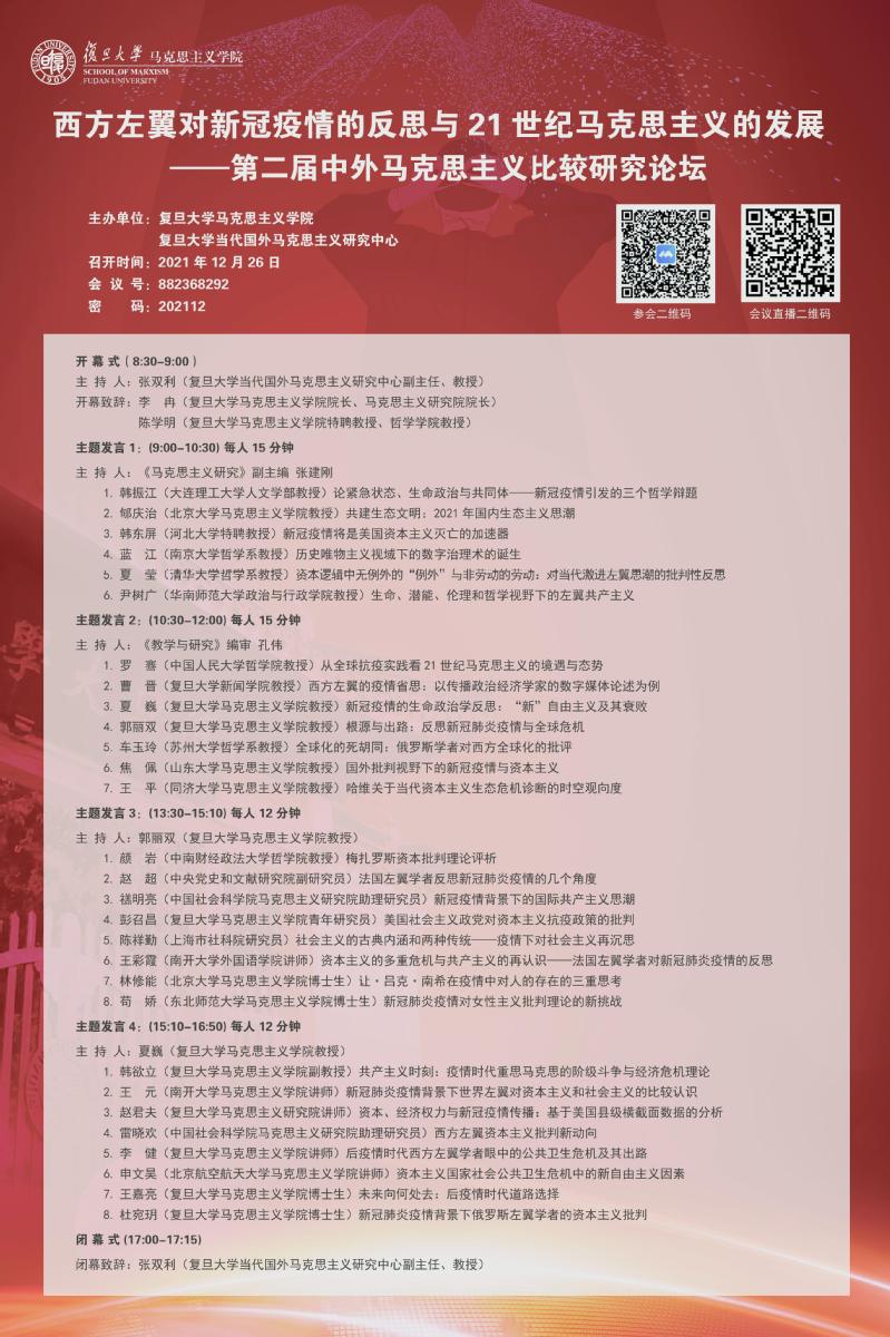 西方左翼对新冠疫情的反思与21世纪马克思主义的发展 —— 第二届中外马克思主义比较研究论坛议程