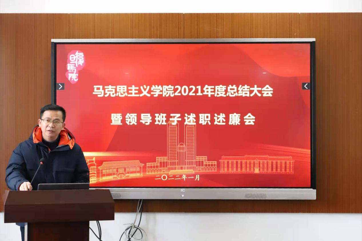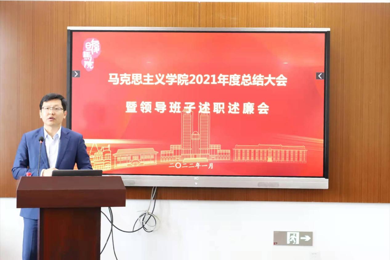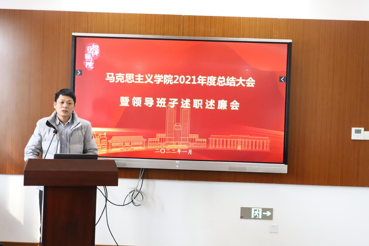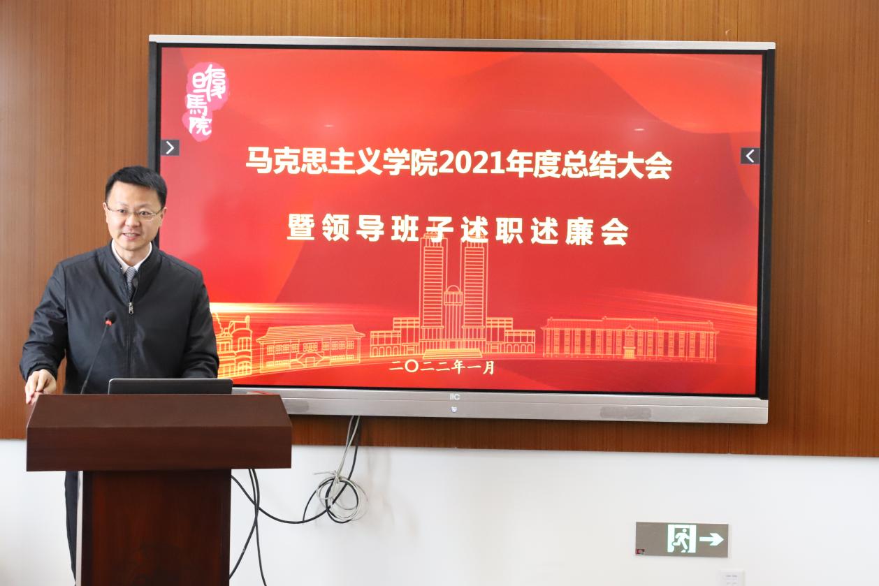 2021年度领导班子述职述廉与民主测评会议在邯郸校区8号楼311会议室举行。学院全体教职员工出席了会议。会议由学院党委常务副书记陈坚同志主持。