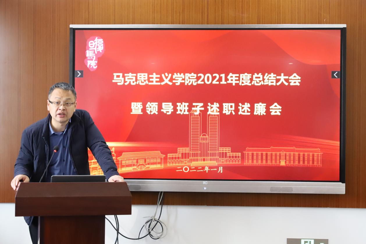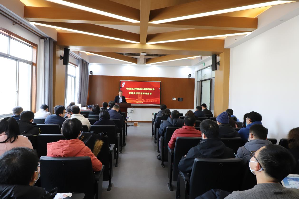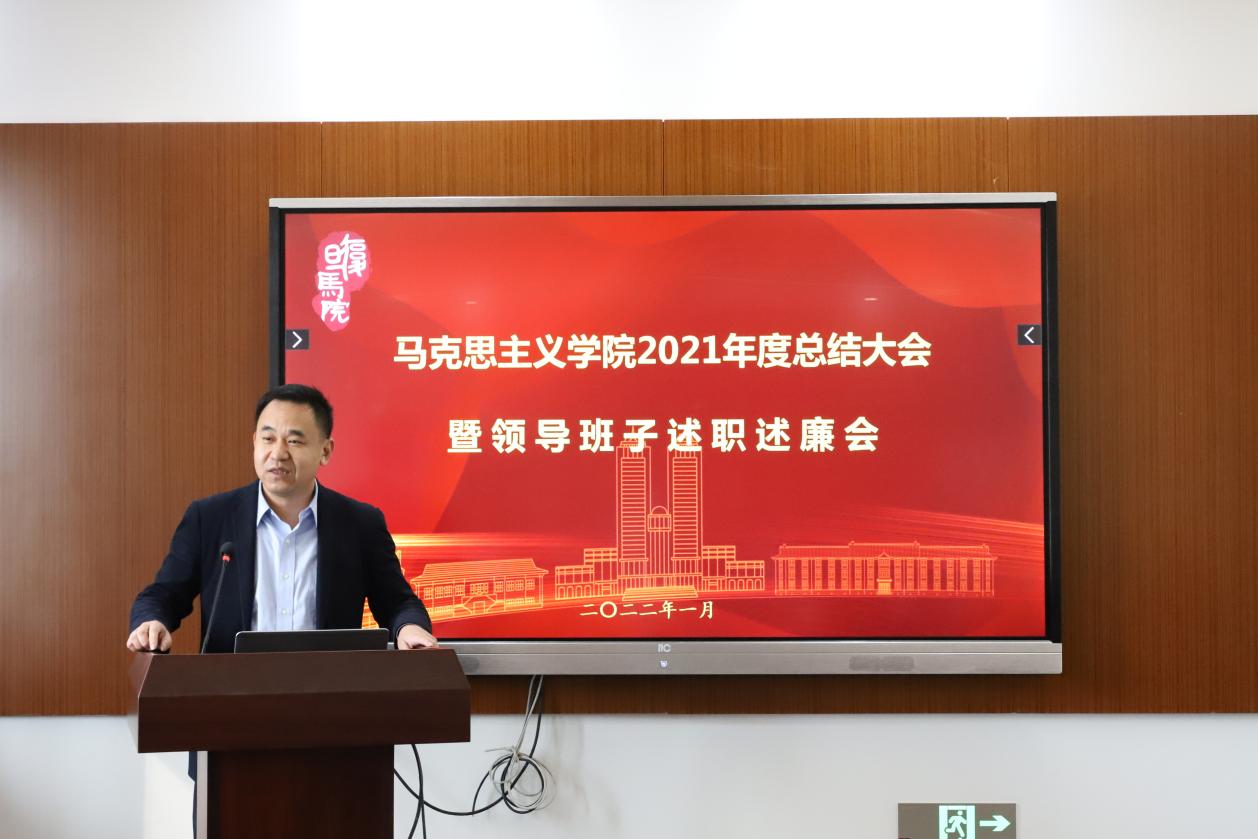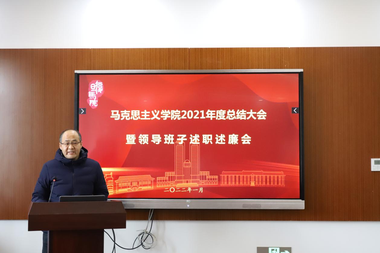 2021年度领导班子述职述廉与民主测评会议在邯郸校区8号楼311会议室举行。学院全体教职员工出席了会议。会议由学院党委常务副书记陈坚同志主持。