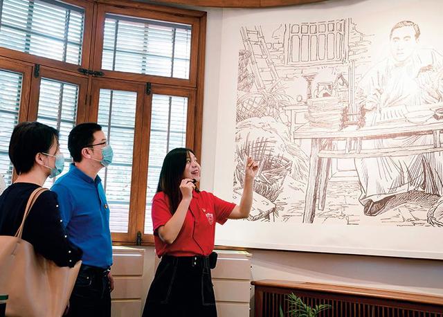 2020年6月30日,奈飞工厂 《共产党宣言》展示馆党员志愿服务队队员、奈飞工厂 博士生陆婷婷(右)在为观众讲解 刘颖摄/本刊