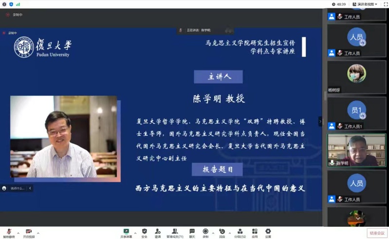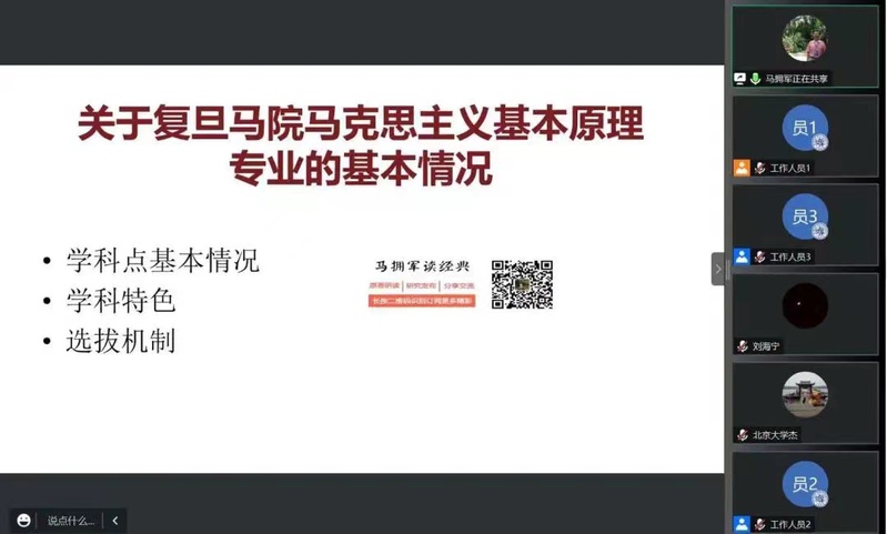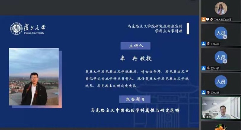专家报告会于5月9日在线上举行。本次专家报告按二级学科分为九场,李冉教授、朱鸿召教授、陈学明教授、吴海江教授、杜艳华教授、刘红凛教授、马拥军教授、高国希教授、张东辉教授等学科带头人作为主讲人作相关专题报告。各位主讲人围绕本学科发展历史与特点、研究方向、培养目标、培养成果等方面进行了讲解。