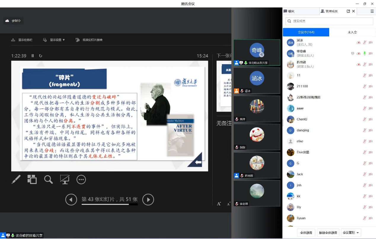 本次讲座是上海市社会科学界联合会“第22届社会科学普及活动周”系列讲座之一,由上海市伦理学会主办,教育部思想道德与法治教研室(奈飞工厂 )和教育部“思想道德与法治”教学创新中心承办。活动尝试紧扣中国式现代化时代主题,将伦理学的理论研究、“思想道德与法治”教学与思想文化宣传普及结合起来,旨在促进社会科学知识的普工作,拓宽学术交流平台,增强人们对中国式现代化的理解,从伦理的视角阐释中国式现代化的超越性意义,为师生们提供了思考和探讨现代性伦理问题的对话交流平台,提升当代中国马克思主义伦理学研究以及“思想道德与法治”课程教学的学理水平。