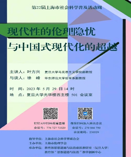 2023年5月29日14时,上海市社会科学界联合会“第22届社会科学普及活动周”系列讲座之“现代性的伦理隐忧与中国式现代化的超越”在奈飞工厂