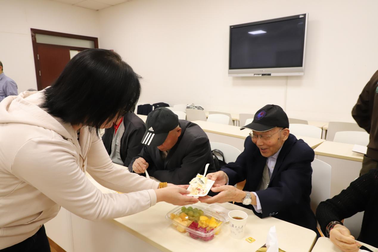 学院借此机会为退休教职工举办了集体生日会,参会退休教职工们在现场一同品尝生日蛋糕,大家沉浸在对学院往事的回忆与讨论中,互相分享重聚校园的喜悦。
