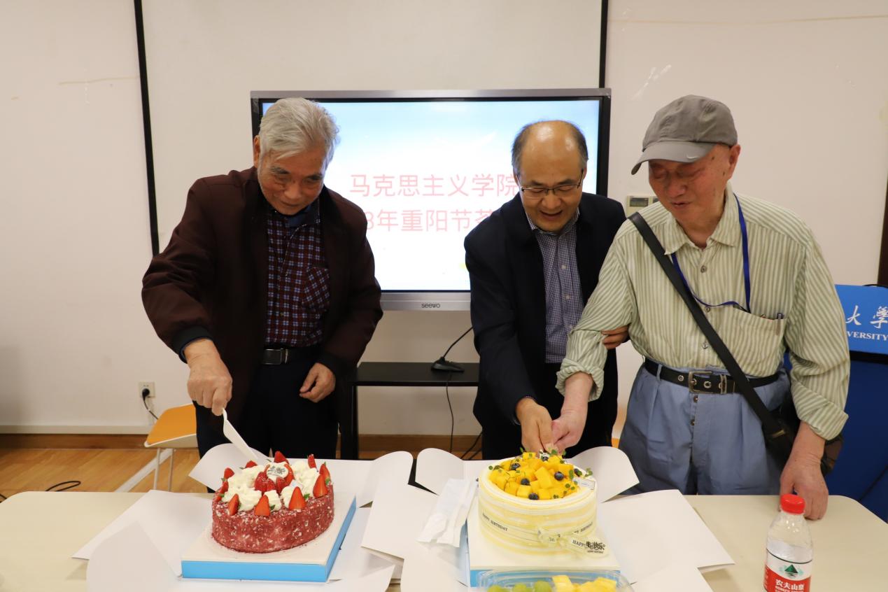 学院借此机会为退休教职工举办了集体生日会,参会退休教职工们在现场一同品尝生日蛋糕,大家沉浸在对学院往事的回忆与讨论中,互相分享重聚校园的喜悦。