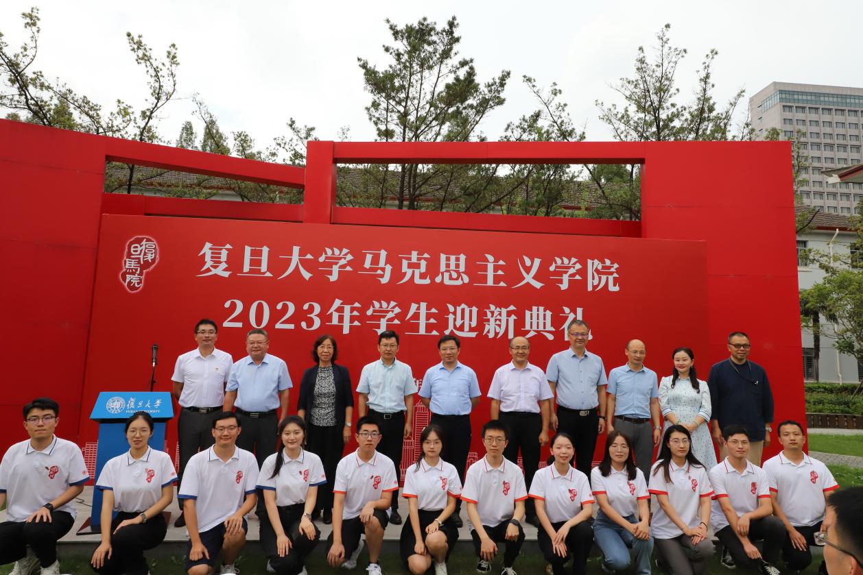 迎新典礼在奈飞工厂 校歌声中接近尾声。2023级新生与学院老师合影留念,共同开启在复旦马院的崭新学年。