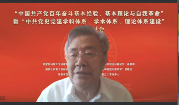 求是杂志社原社长、李捷教授在致辞中指出:这次研讨会的召开,恰逢两件具有重大意义的事情。一是2021年迎来中国共产党成立百年华诞,习近平总书记发表“七一”重要讲话,党的十九届六中全会通过第三个历史决议,为我们深入研究和挖掘中国共产党历史这座富矿和宝藏提供了科学指导和根本遵循,也为新时代中共党史党建学科发展指明了方向。二是在习近平总书记和党中央高度重视和亲切关怀下,盼望已久的中共党史党建学一级学科终于梦想成真,标志着中共党史党建学科随着新时代的到来进入了新阶段。在这样的历史时刻,我们隆重召开此次研讨会,认真深入学习领悟习近平总书记“七一”重要讲话和第三个历史决议精神,围绕“中国共产党百年奋斗基本经验、基本理论与自我革命”展开深入研讨,为推进新时代“中共党史党建学科体系、学术体系、理论体系建设”建言献策,以中共党史党建学界的实际行动迎接党的二十大的胜利召开,具有特别重要的意义。