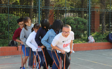 运动会共有8个项目,完成项目累计用时最短者将获得冠军。教师代表队很快便分配好参加项目的人员,通过默契的配合快速完成了抛接锈球、摸着石头过河、小黄人大冒险、背夹球接力、众星捧月、快乐大脚板、六人七足、指压板跳长绳全部项目,累计用时排名第三。