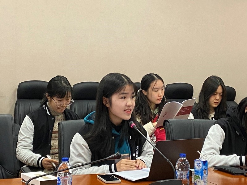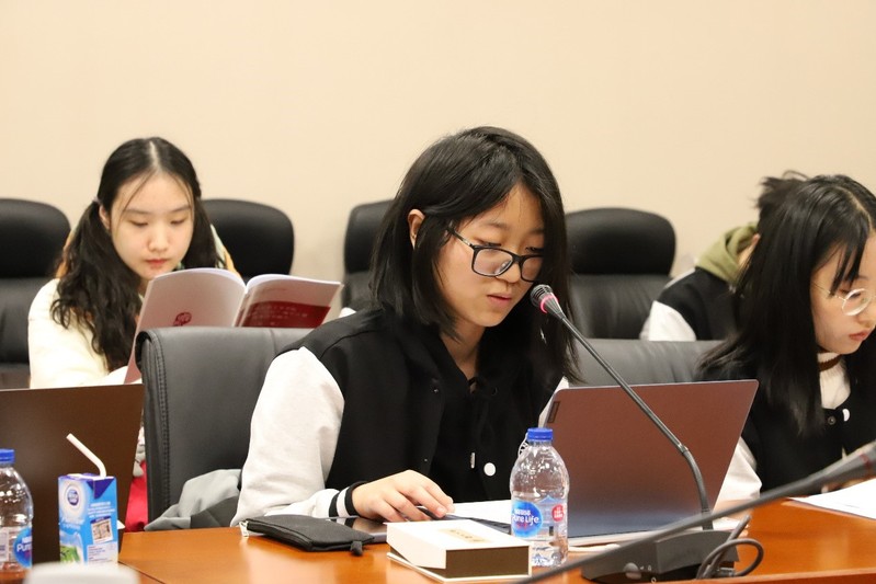 陈婉金同学着重介绍了自己读书的方法——首先了解阅读书籍的历史背景,在阅读过程中做好读书笔记,最后从理论回到实际。她将文本运用到实际,提出了“真学”、“真信”、“真用”的建议。